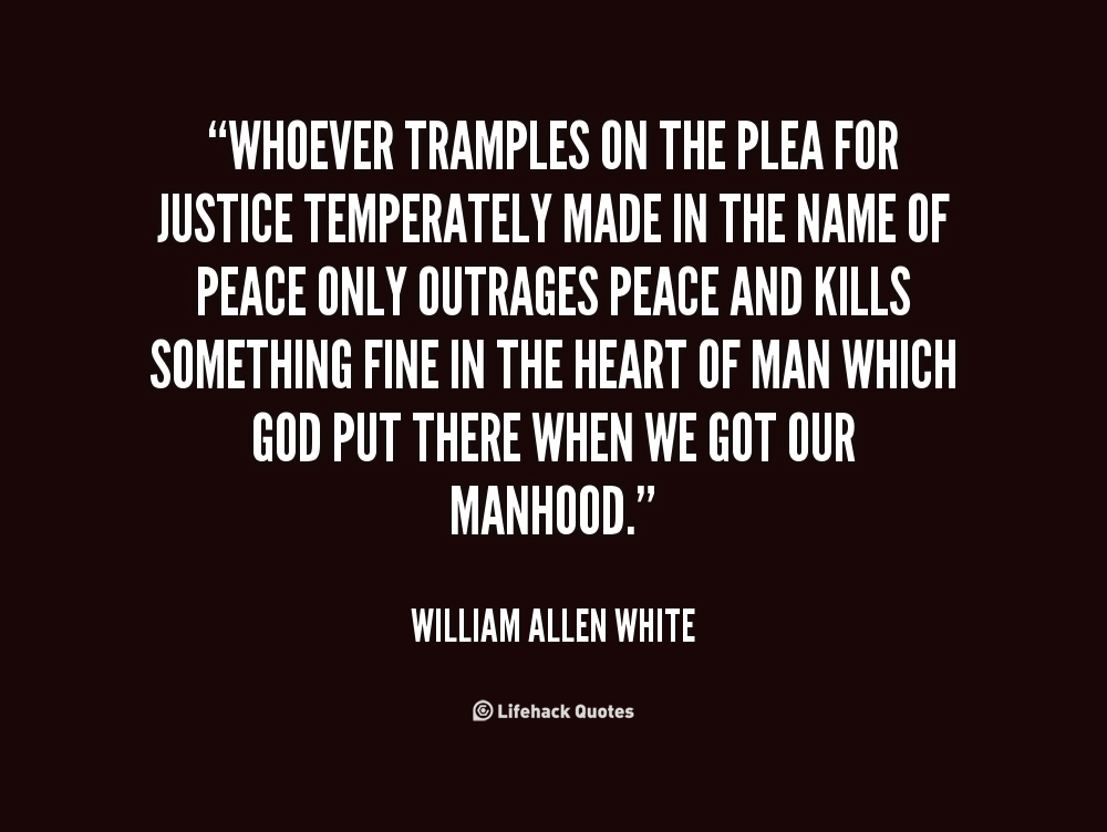 Whoever tramples on the plea for justice temperately made in the name of peace only outrages peace and kills something fine in the heart of man which God put there when we got our manhood.