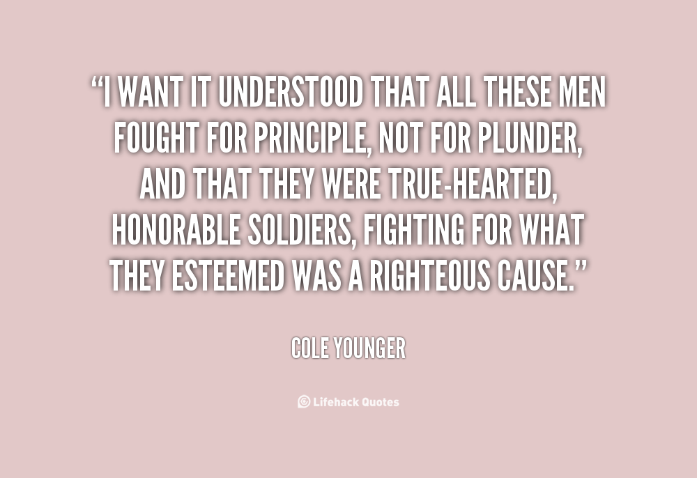 I want it understood that all these men fought for principle, not for plunder, and that they were true-hearted, honorable soldiers, fighting for what they esteemed was a righteous cause.