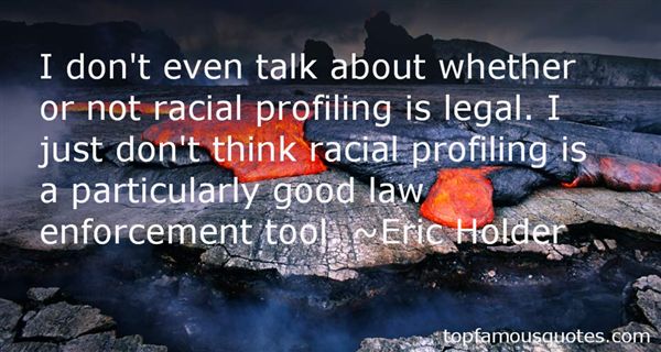 I don't even talk about whether or not racial profiling is legal. I just don't think racial profiling is a particularly good law enforcement tool.