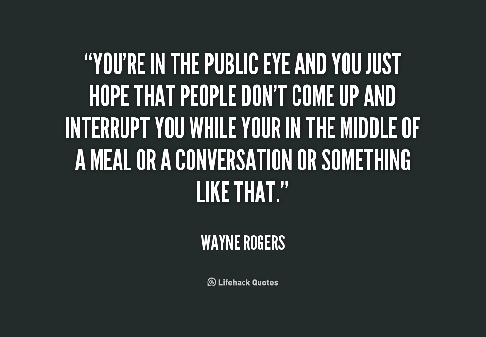 You're in the public eye and you just hope that people don't come up and interrupt you while your in the middle of a meal or a conversation or something like that.