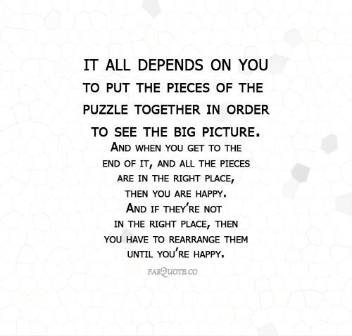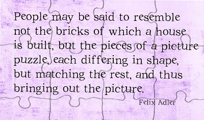 There are no extra pieces in the universe. Everyone is here because he or she has a place to fill, and every piece must fit itself into the big jigsaw puzzle.