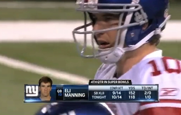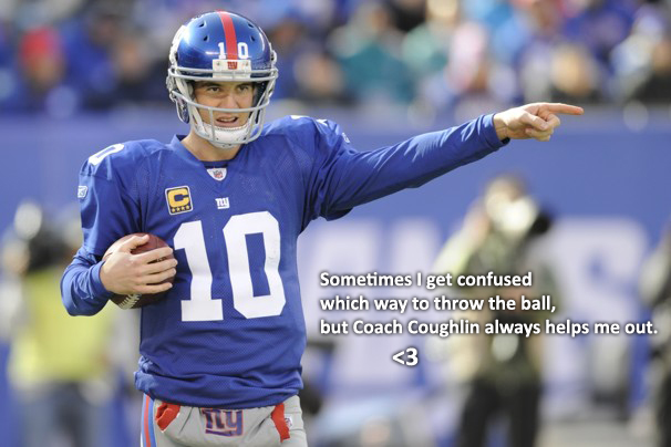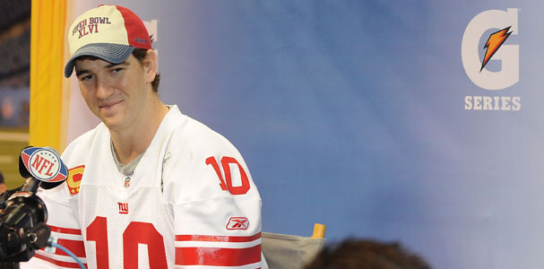 Elisha Nelson "Eli" Manning is an American football quarterback for the New York Giants of the National Football League. He is the son of former NFL quarterback Archie Manning and the younger brother of Denver Broncos quarterback Peyton Manning. Manning played college football at the University of Mississippi after attending prep school at Isidore Newman School in New Orleans. He was drafted as the first overall pick in the 2004 NFL Draft by the San Diego Chargers and immediately traded to the New York Giants, who in return gave up a package highlighted by fourth overall selection Philip Rivers... (wikipedia)