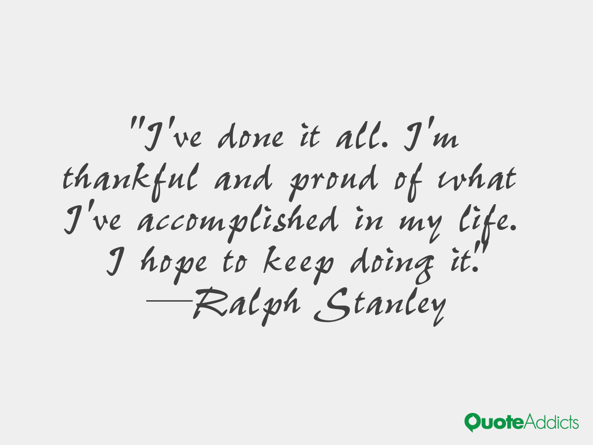 Ralph Edmund Stanley, also known as Dr. Ralph Stanley, is an American bluegrass artist, known for his distinctive singing and banjo playing. Stanley has been playing music since 1946, originally with his brother Carter as part of the "Stanley Brothers", and most often as the leader of his band, the "Clinch Mountain Boys". He is part of the first generation of bluegrass musicians and has been inducted into both the International Bluegrass Music Hall of Honor and the Grand Ole Opry... (wikipedia)