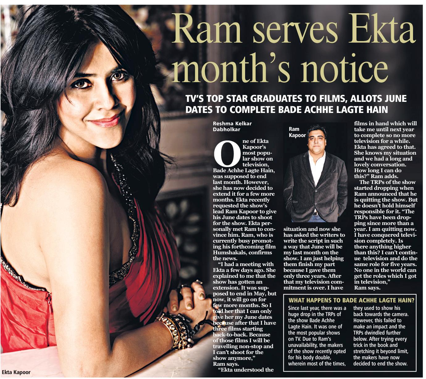 Ram Kapoor is an Indian television actor. He portrayed Jai Walia in Kasamh Se, the character Ram Kapoor in Bade Achhe Lagte Hain, and hosted Rakhi Ka Swayamwar... (wikipedia)