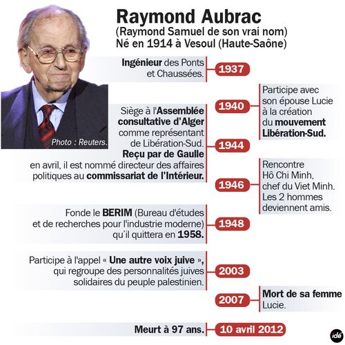 Raymond Aubrac was a leader of the French Resistance during the Second World War and a civil engineer after the Second World War... (wikipedia)