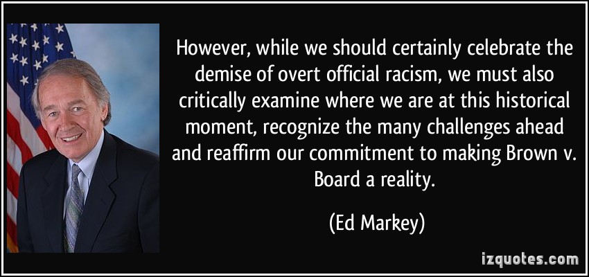 However, while we should certainly celebrate the demise of overt official racism, we must also critically examine where we are at this historical moment, recognize the many challenges ahead and reaffirm our commitment to making Brown v. Board a reality.