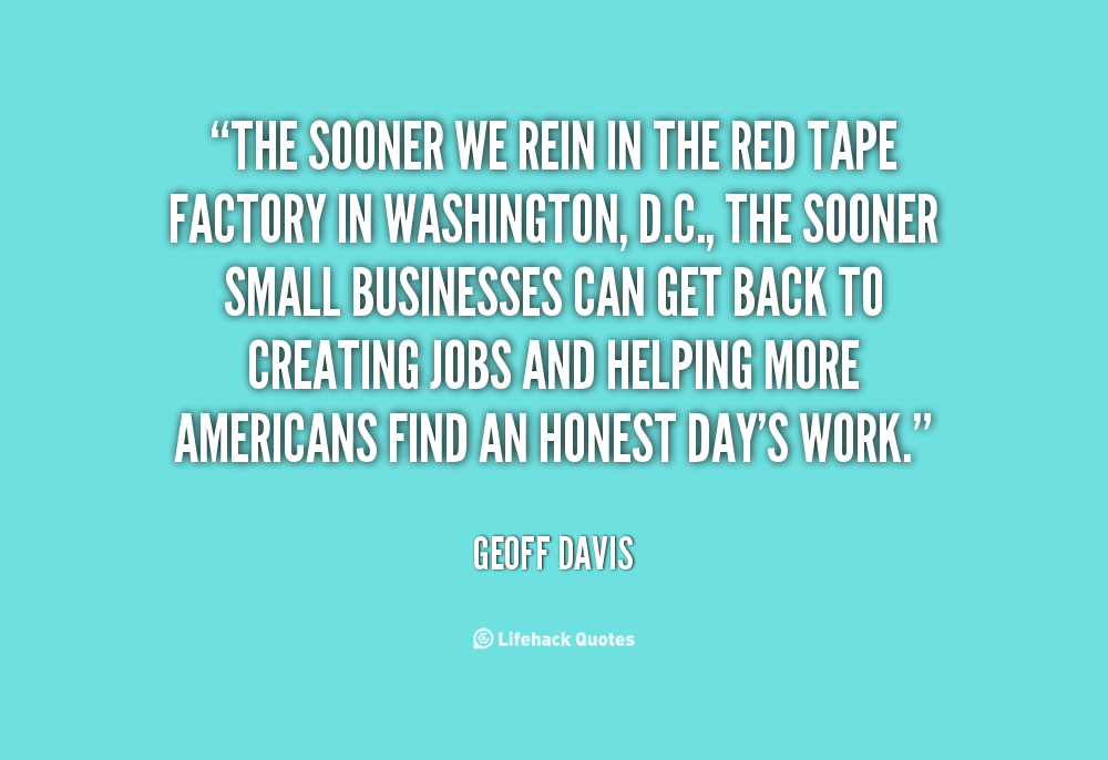 The sooner we rein in the red tape factory in Washington, D.C., the sooner small businesses can get back to creating jobs and helping more Americans find an honest day's work.