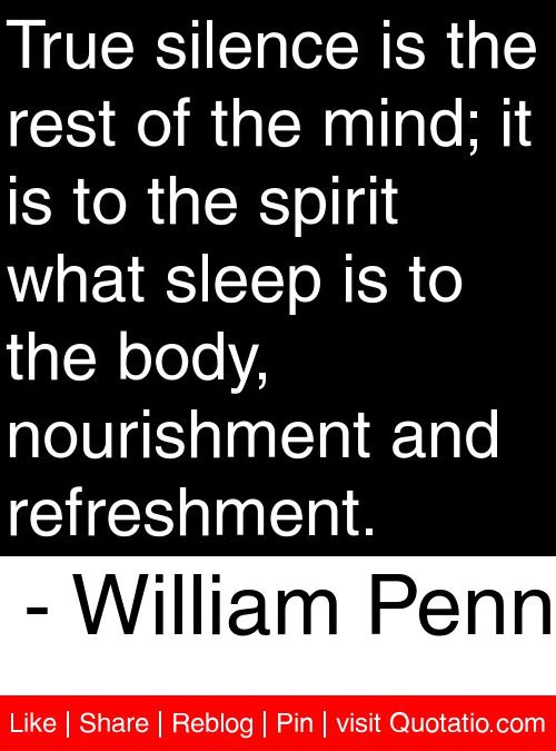 True silence is the rest of the mind, and is to the spirit what sleep is to the body, nourishment and refreshment.