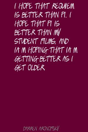 I hope that Requiem is better than Pi. I hope that Pi is better than my student films, and I'm hoping that I'm getting better as I get older.
