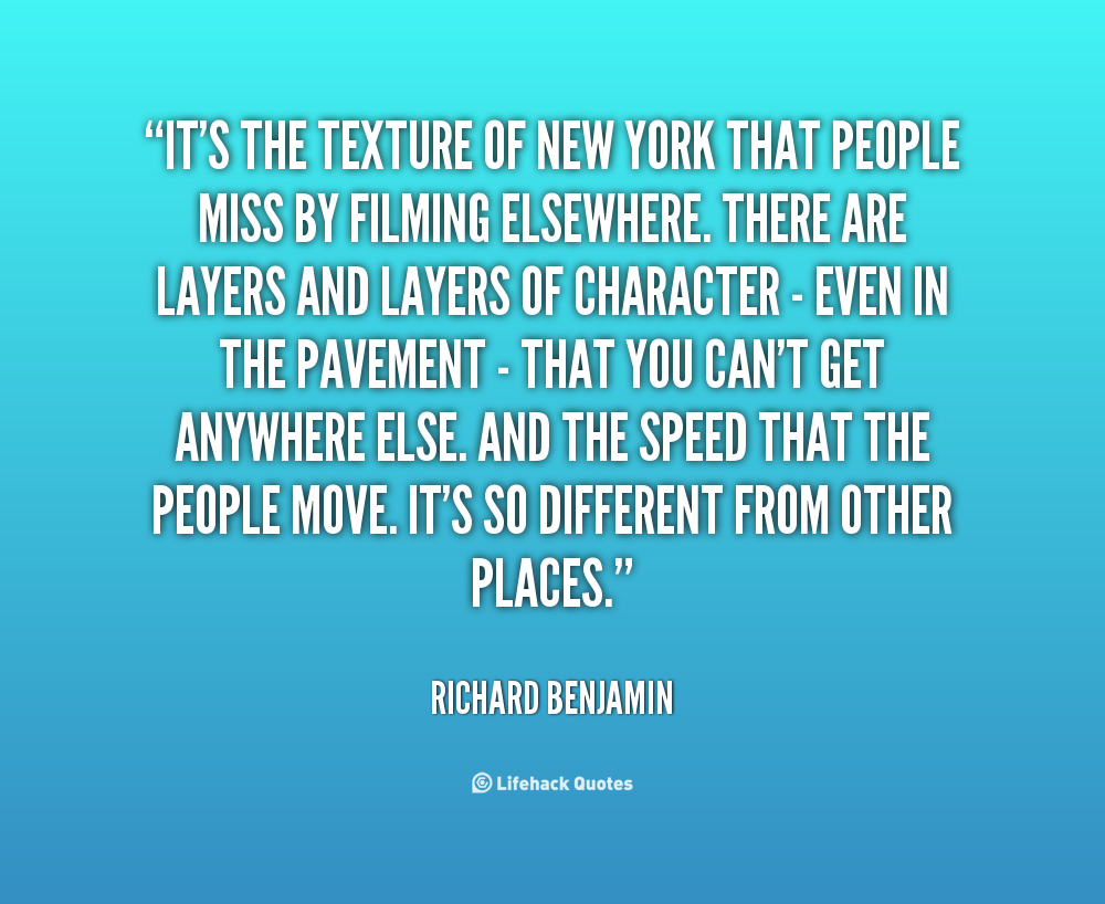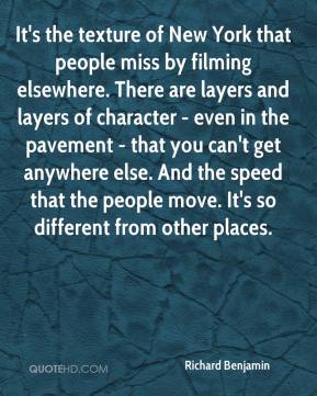 It's the texture of New York that people miss by filming elsewhere. There are layers and layers of character - even in the pavement - that you can't get anywhere else. And the speed that the people move. It's so different from other places.