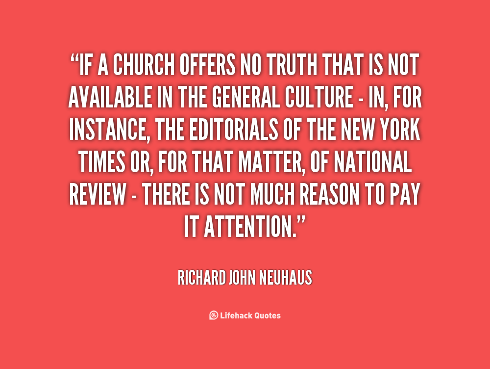 Richard John Neuhaus was a prominent Christian cleric and writer. Born in Canada, Neuhaus moved to the United States where he became a naturalized United States citizen. He was the founder and editor of the monthly journal First Things and the author of several books, including The Naked Public Square: Religion and Democracy in America, The Catholic Moment: The Paradox of the Church in the Postmodern World, and Catholic Matters: Confusion, Controversy, and the Splendor of Truth. A staunch defender of the Roman Catholic Church's teachings on abortion and other life issues, he served as an unofficial adviser to President George W. Bush on bioethical issues... (wikipedia)