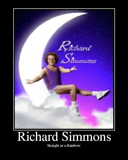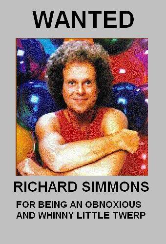 Milton Teagle Simmons, better known as Richard Simmons, is an American fitness personality and actor. Simmons promotes weight-loss programs, prominently through his Sweatin' to the Oldies line of aerobics videos and is known for his eccentric, flamboyant, and energetic personality. Simmons began his weight-loss career by opening a gym called Slimmons in Beverly Hills, California, catering to the overweight, and he became widely known through exposure on television and through the popularity of his consumer products. He is often parodied and is a frequent guest of late night television talk shows, such as the Late Show with David Letterman. Simmons continues to promote health and has broadened his activities to include political activism, notably in support of a bill mandating non-competitive physical education in public schools as a part of the "No Child Left Behind" Act... (wikipedia)