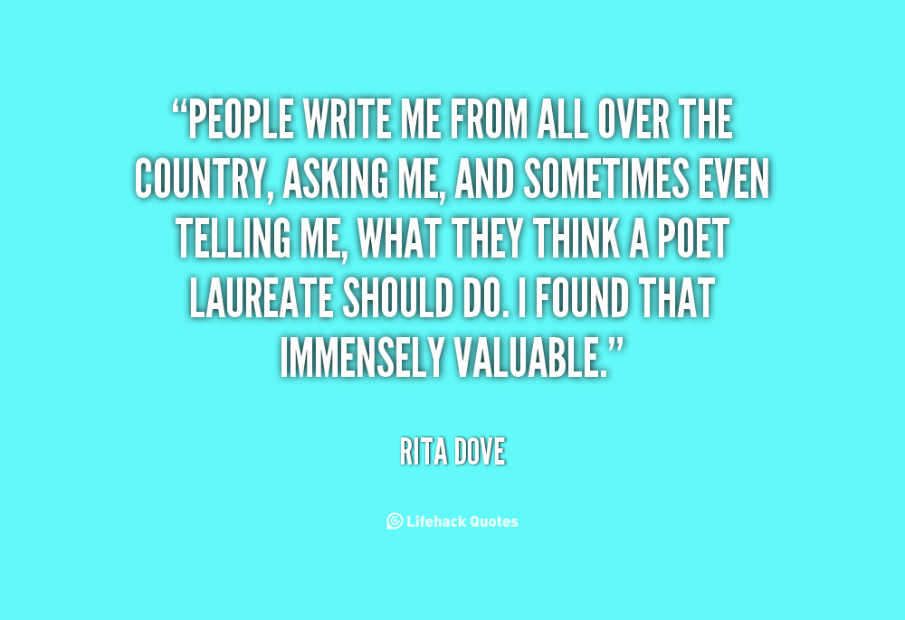 Rita Frances Dove is an American poet and author. From 1993 to 1995 she served as Poet Laureate Consultant in Poetry to the Library of Congress. She is the first African American to have been appointed since the position was created by an act of Congress in 1986 from the previous "consultant in poetry" position. Dove also received an appointment as "special consultant in poetry" for the Library of Congress's bicentennial year from 1999 to 2000. Dove is the second African American to receive the Pulitzer Prize for Poetry, in 1987, and she served as the Poet Laureate of Virginia from 2004 to 2006... (wikipedia)