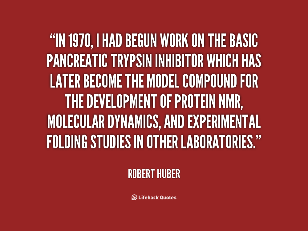 In 1970, I had begun work on the basic pancreatic trypsin inhibitor which has later become the model compound for the development of protein NMR, molecular dynamics, and experimental folding studies in other laboratories.