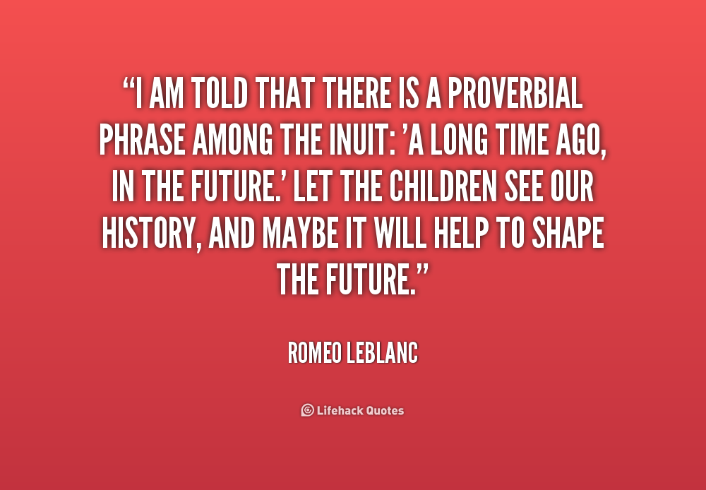 I am told that there is a proverbial phrase among the Inuit: 'A long time ago, in the future.' Let the children see our history, and maybe it will help to shape the future.
