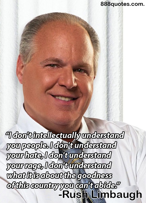Rush Hudson Limbaugh III is an American entertainer, radio talk show host, writer, and conservative political commentator. Since he was 16, Limbaugh has worked a series of disc jockey jobs. His talk show began in 1984 at Sacramento, California radio station KFBK, featuring his ongoing format of political commentary and listener calls. In 1988, Limbaugh began broadcasting his show nationally from radio station WABC in New York City, and now broadcasts from WOR. He currently lives in Palm Beach, Florida, where he broadcasts The Rush Limbaugh Show, the highest-rated talk-radio program in the United States.Talkers Magazine in 2012 lists Limbaugh as the most-listened-to talk show host with a weekly audience of 15 million... (wikipedia)