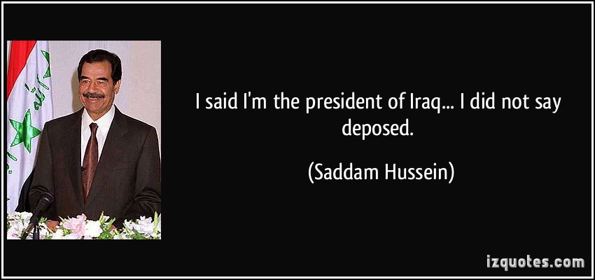 Saddam Hussein Abd al-Majid al-Tikriti was the fifth President of Iraq, serving in this capacity from 16 July 1979 until 9 April 2003. A leading member of the revolutionary Arab Socialist Ba'ath Party, and later, the Baghdad-based Ba'ath Party and its regional organization Ba'ath Party – Iraq Region—which espoused Ba'athism, a mix of Arab nationalism and socialism—Saddam played a key role in the 1968 coup that brought the party to power in Iraq... (wikipedia)