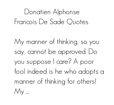 Whatever you think of de Sade, he was a complex figure and we should not look for easy answers with him. He was, strangely perhaps, against the death penalty, and he was never put in prison for murders or anything like that.