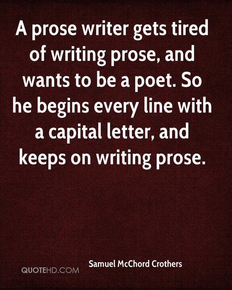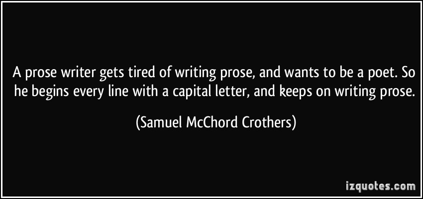 A prose writer gets tired of writing prose, and wants to be a poet. So he begins every line with a capital letter, and keeps on writing prose.