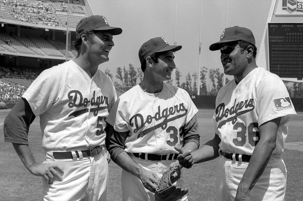 Sanford "Sandy" Koufax is a retired American Major League Baseball left-handed pitcher. He pitched twelve seasons for the Brooklyn/Los Angeles Dodgers, from 1955 to 1966. Koufax, at age 36 in 1972, became the youngest player ever inducted into the Baseball Hall of Fame... (wikipedia)
