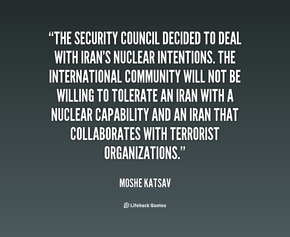 I think we've already voted at the U.N., in the Security Council, to get rid of nuclear weapons. Let's get rid of them. Let's get rid of ours and then Iran will stop, I believe. And so everybody else will, because if everybody doesn't have them, then we're safe, at least safe from a nuclear attack.