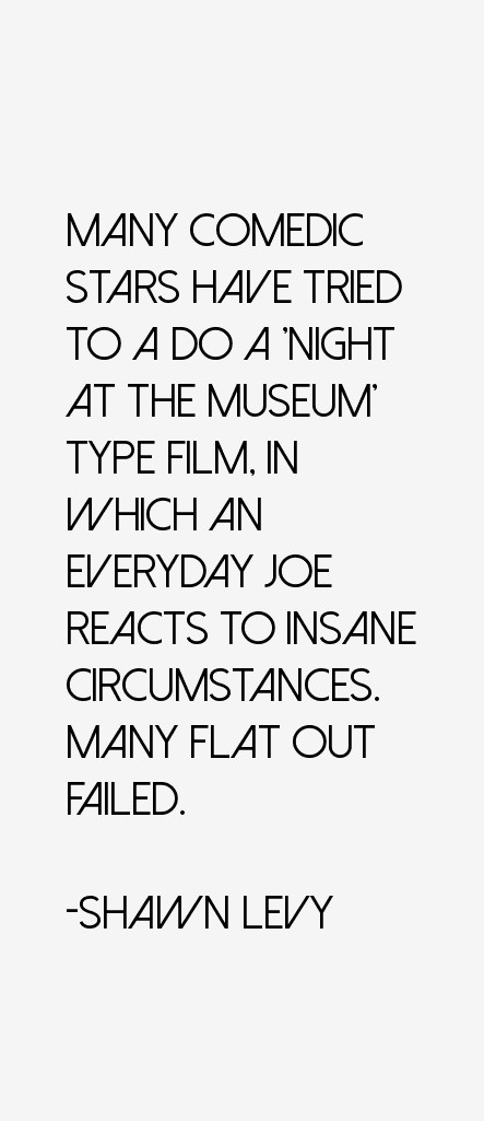 Shawn Adam Levy is a Canadian-American film director, producer, and actor. He directed the comedy films Big Fat Liar, Just Married, Cheaper by the Dozen, The Pink Panther, Night at the Museum and its sequels Night at the Museum: Battle of the Smithsonian and Night at the Museum: Secret of the Tomb, as well as Date Night, The Internship, and the sci-fi sports drama Real Steel. Cumulatively, Levy's films have grossed $2 billion at the worldwide box office, making him one of the most commercially successful filmmakers of the past decade. He has also directed many television shows, including Cousin Skeeter, The Famous Jett Jackson, and Pepper Dennis... (wikipedia)