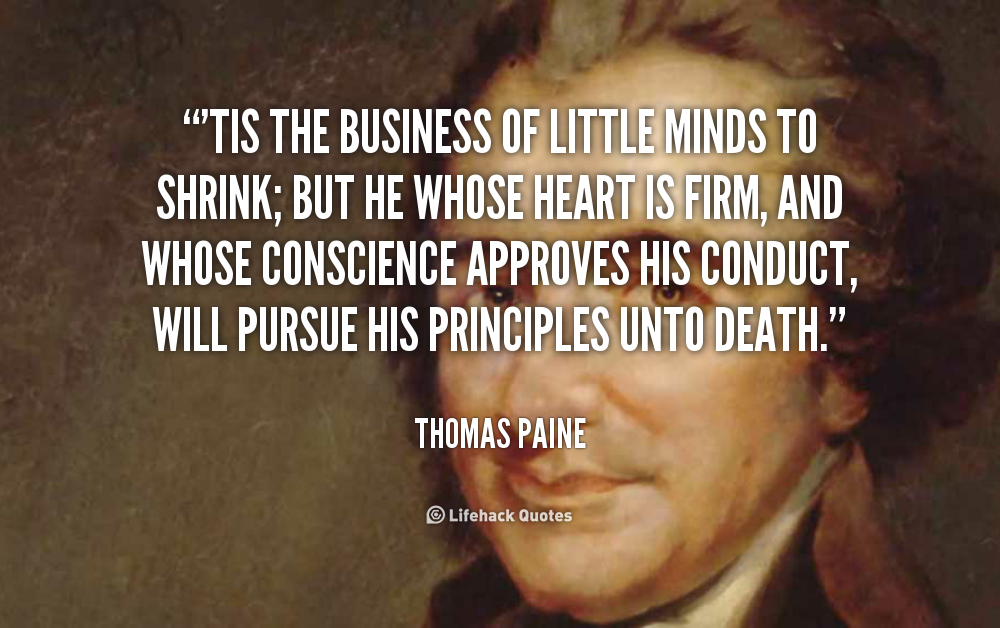 I love the man that can smile in trouble, that can gather strength from distress, and grow brave by reflection. 'Tis the business of little minds to shrink, but he whose heart is firm, and whose conscience approves his conduct, will pursue his principles unto death.