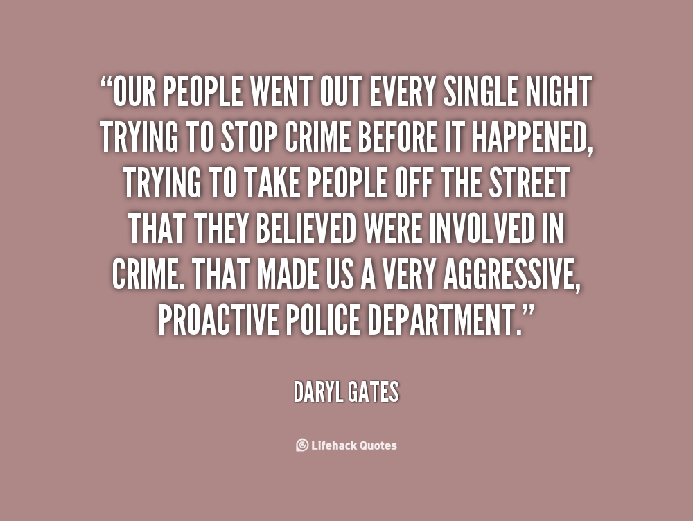 Our people went out every single night trying to stop crime before it happened, trying to take people off the street that they believed were involved in crime. That made us a very aggressive, proactive police department.