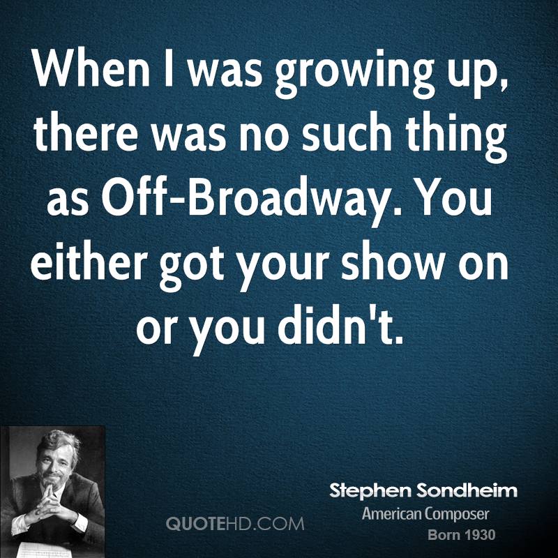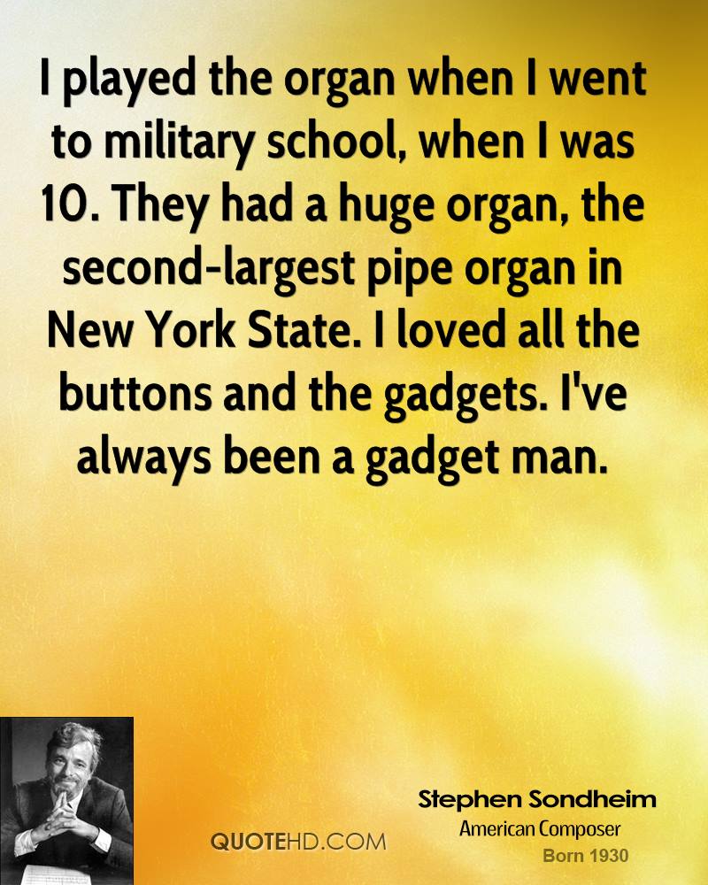 I'm a devotee of Stephen Sondheim. I think he's a genius.