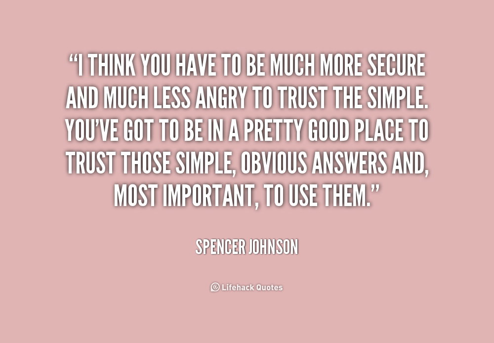 I think you have to be much more secure and much less angry to trust the simple. You've got to be in a pretty good place to trust those simple, obvious answers and, most important, to use them.