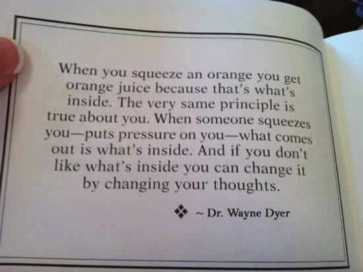 When you squeeze an orange, orange juice comes out - because that's what's inside. When you are squeezed, what comes out is what is inside.