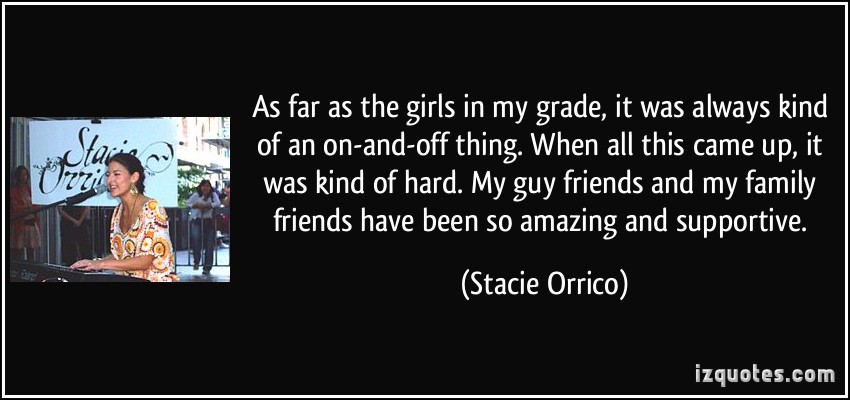 Stacie Joy Orrico is an American singer, songwriter, and occasional actress. In 1998, she signed to ForeFront Records when she was 12 years old, and recorded her first album, Genuine, which sold 13,000 in its first week of release... (wikipedia)