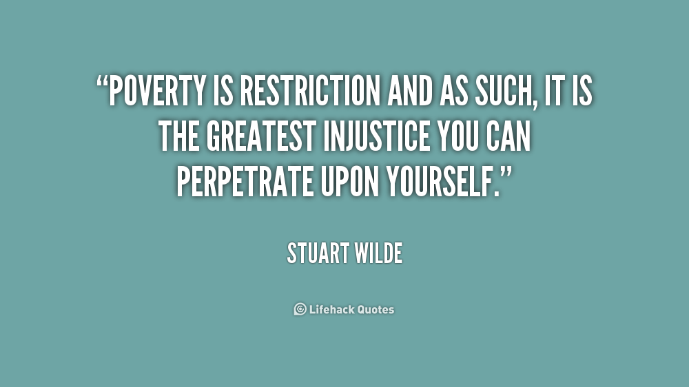 Poverty is restriction and as such, it is the greatest injustice you can perpetrate upon yourself.