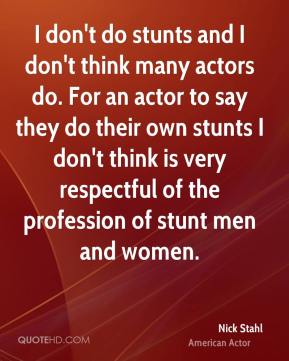 I don't do my own stunts, but I do my own fighting. I don't consider fighting to be a stunt.