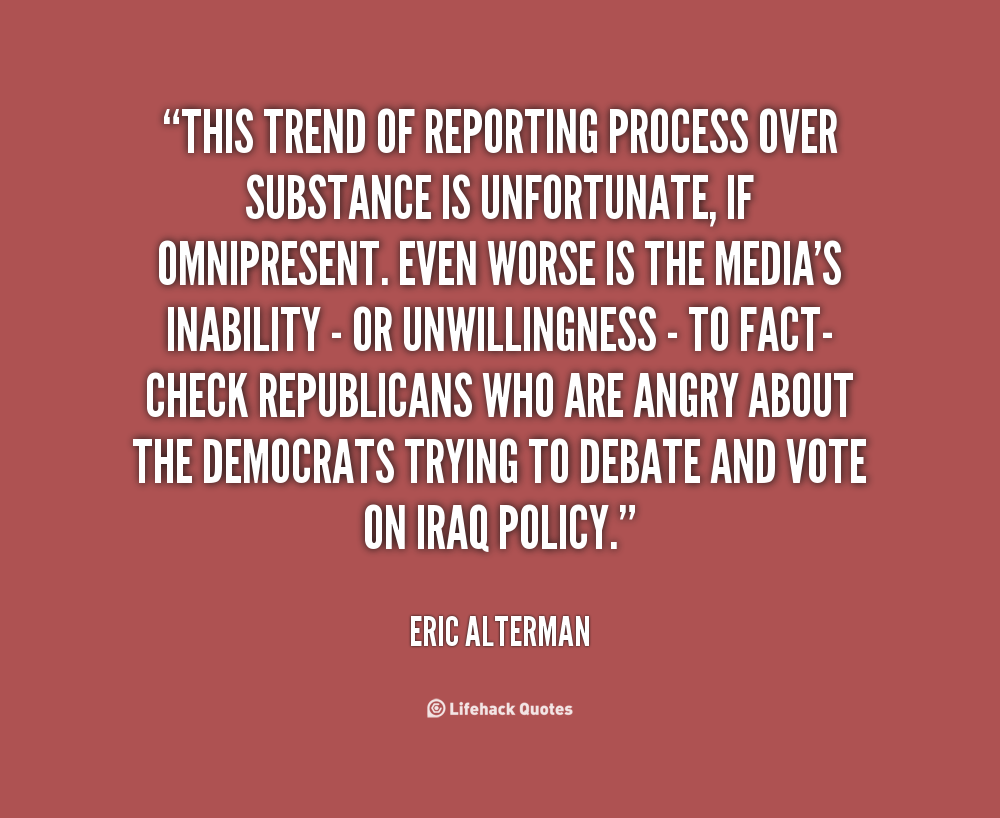 This trend of reporting process over substance is unfortunate, if omnipresent. Even worse is the media's inability - or unwillingness - to fact-check Republicans who are angry about the Democrats trying to debate and vote on Iraq policy.