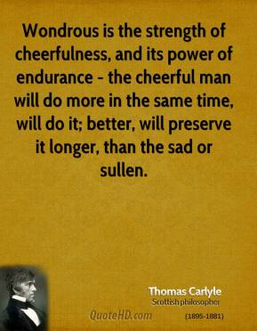 Wondrous is the strength of cheerfulness, and its power of endurance - the cheerful man will do more in the same time, will do it; better, will preserve it longer, than the sad or sullen.