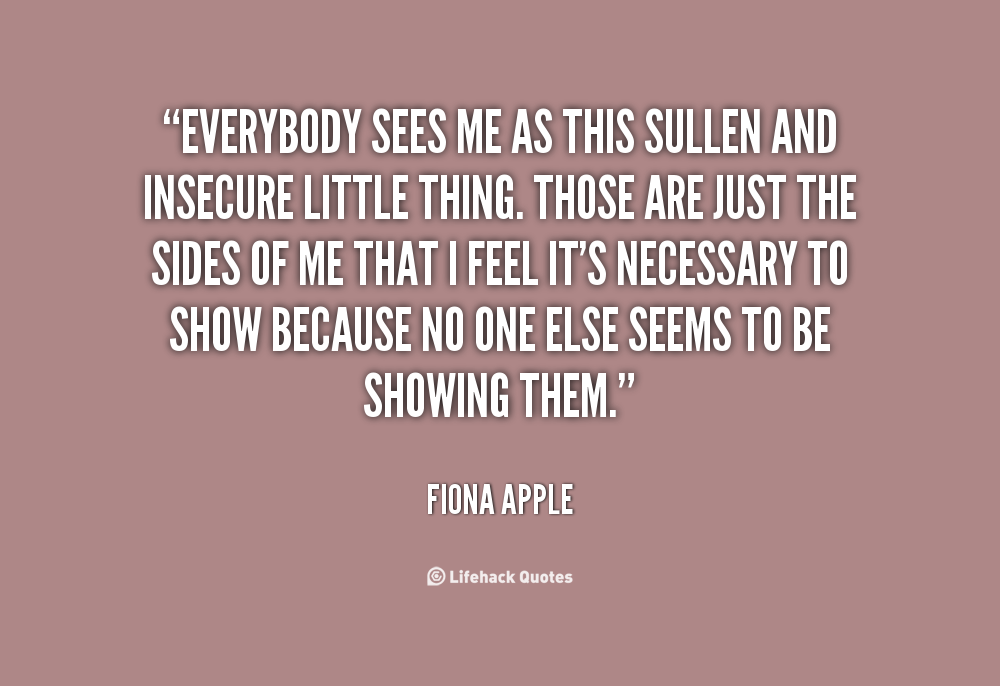 Everybody sees me as this sullen and insecure little thing. Those are just the sides of me that I feel it's necessary to show because no one else seems to be showing them.
