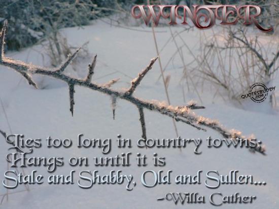 Winter lies too long in country towns; hangs on until it is stale and shabby, old and sullen.