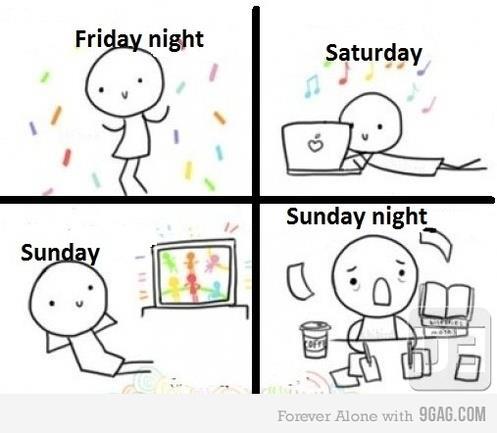 Wherever I am in the world, I never get Sunday night blues. I suppose it's because I've never worked at any one thing long enough to start hating it.