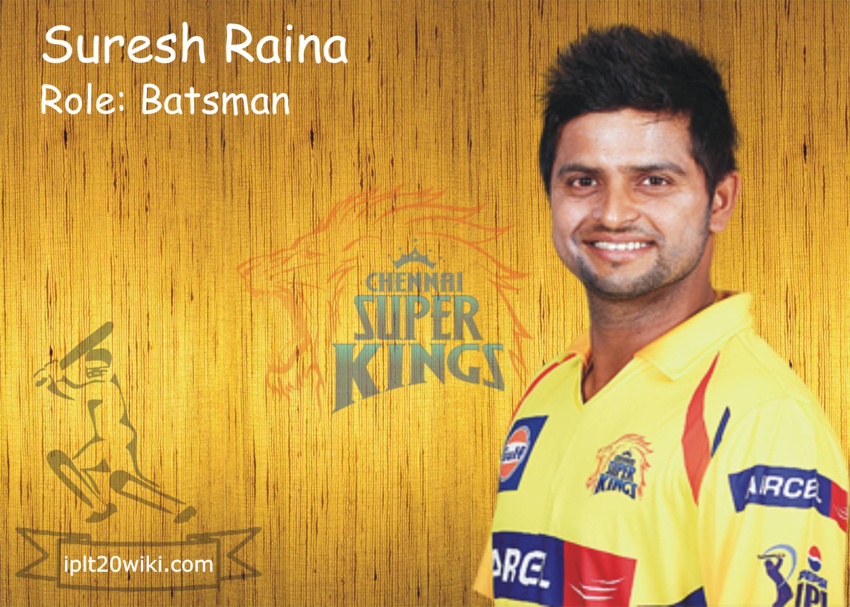 Suresh Raina is an Indian professional cricketer. A left-handed middle-order batsman and an occasional off-spin bowler; he plays for Uttar Pradesh in all forms of domestic cricket and is the vice-captain of Chennai Super Kings in the Indian Premier League. He has also captained the Indian cricket team and is the second youngest player to captain India. He is one of two Indian batsmen to ever score a century in all three formats of international cricket... (wikipedia)