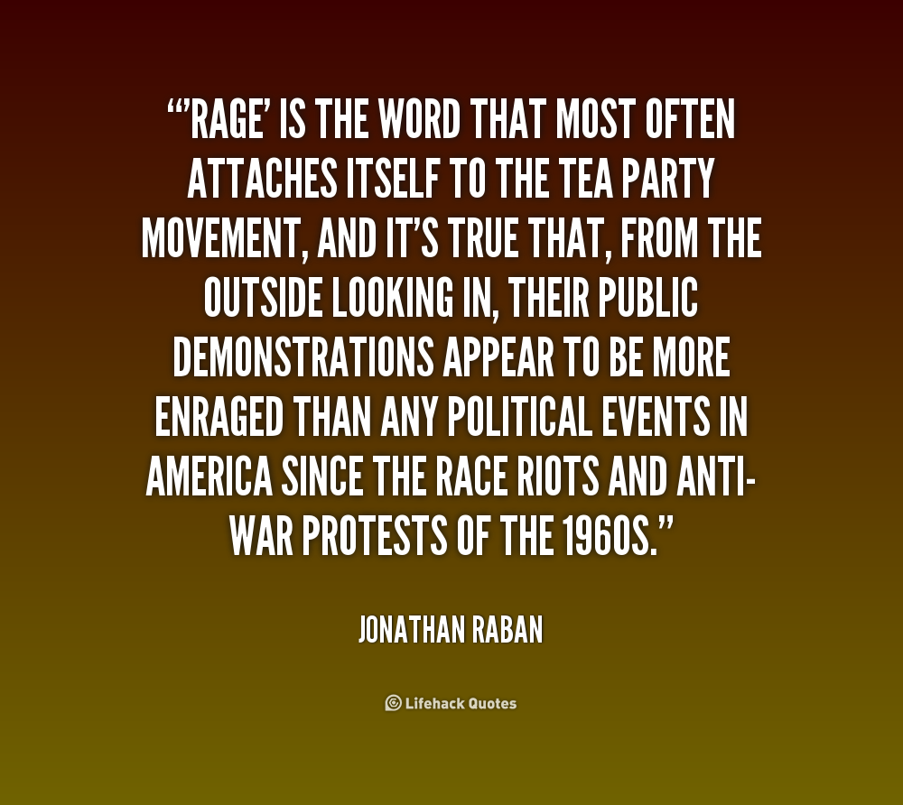 'Rage' is the word that most often attaches itself to the Tea Party movement, and it's true that, from the outside looking in, their public demonstrations appear to be more enraged than any political events in America since the race riots and anti-war protests of the 1960s.