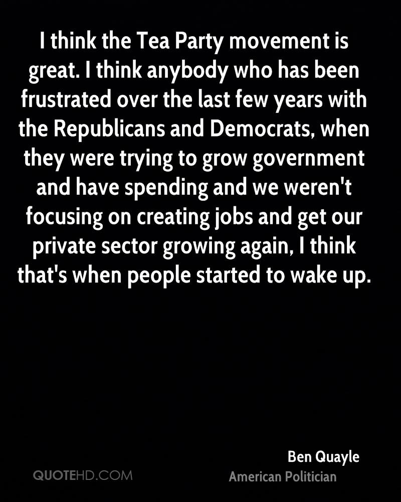 I think the Tea Party movement is great. I think anybody who has been frustrated over the last few years with the Republicans and Democrats, when they were trying to grow government and have spending and we weren't focusing on creating jobs and get our private sector growing again, I think that's when people started to wake up.