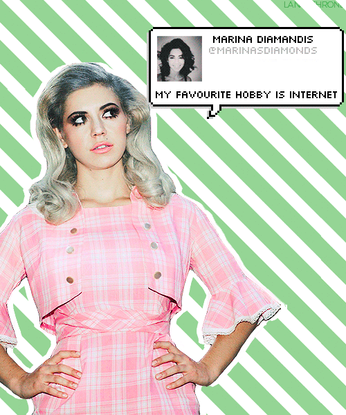 Marina Lambrini Diamandis, better known by her stage name Marina and the Diamonds, is a Welsh singer-songwriter. Born in Brynmawr and raised in nearby Pandy, she performed for choir productions in her childhood. In 2009, Diamandis came to prominence after being ranked in second place on the Sound of 2010 poll organised by the BBC... (wikipedia)