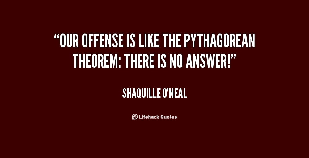 There is no answer to the Pythagorean theorem. Well, there is an answer, but by the time you figure it out, I got 40 points, 10 rebounds and then we're planning for the parade.