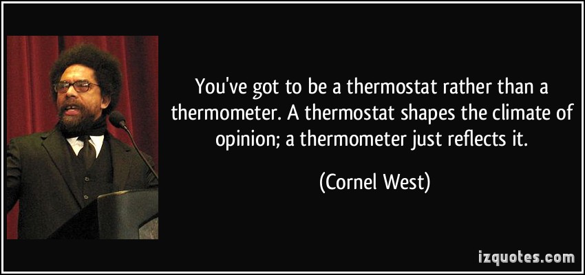 You've got to be a thermostat rather than a thermometer. A thermostat shapes the climate of opinion; a thermometer just reflects it.
