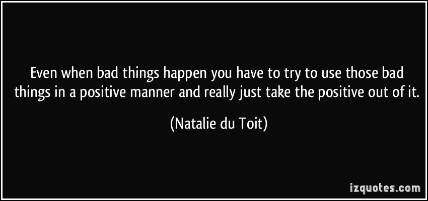 Even when bad things happen you have to try to use those bad things in a positive manner and really just take the positive out of it.