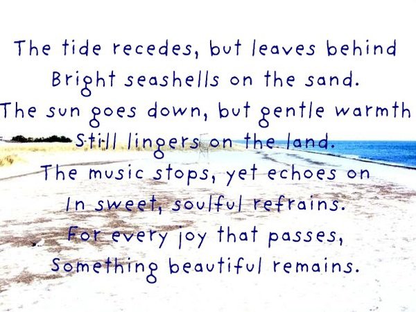 Life is a little like a message in a bottle, to be carried by the winds and the tides.