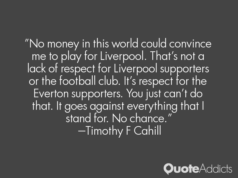 No money in this world could convince me to play for Liverpool. That's not a lack of respect for Liverpool supporters or the football club. It's respect for the Everton supporters. You just can't do that. It goes against everything that I stand for. No chance.