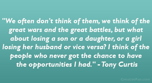 Tony Curtis was an American film actor whose career spanned six decades, but had his greatest popularity during the 1950s and early 1960s. He acted in more than 100 films in roles covering a wide range of genres, from light comedy to serious drama. In his later years, Curtis made numerous television appearances... (wikipedia)