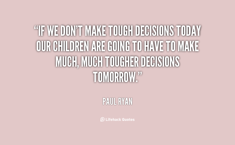 If we don't make tough decisions today our children are going to have to make much, much tougher decisions tomorrow.